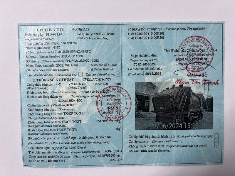 HÌNH ẢNH XE Ô TÔ CUỐN ÉP CHỞ RÁC 14 KHỐI HINO FG ĐÃ QUA SỬ DỤNG ĐỜI 2009