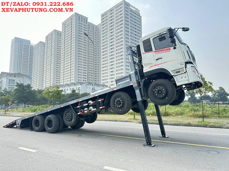 Xe nâng đầu chở máy chuyên dùng 5 chân Dongfeng hay còn được gọi là xe nâng đầu chở máy công trình Dongfeng với tải trọng cho phép chở hàng hóa lên tới 19 tấn, xe nâng đầu 5 chân Dongfeng là sản phẩm mới nhất của công ty chúng tôi ra mắt thị trường. Xe Chassi được nhập khẩu nguyên chiếc từ nhà máy Dongfeng Hồ Bắc (Trung Quốc), xe được trang bị động cơ Yuchai 350hp mạnh mẽ bền bỉ và tiết kiệm nhiên liệu đem lại hiệu quả kinh tế cao. Hệ thống chuyên dùng nâng đầu được chúng tôi sản xuất tại Việt Nam với tiêu chuẩn kỹ thuật hiện đại tiên tiến nhất giúp đảm bảo về chất lượng của xe khi đưa xe vào sử dụng.
