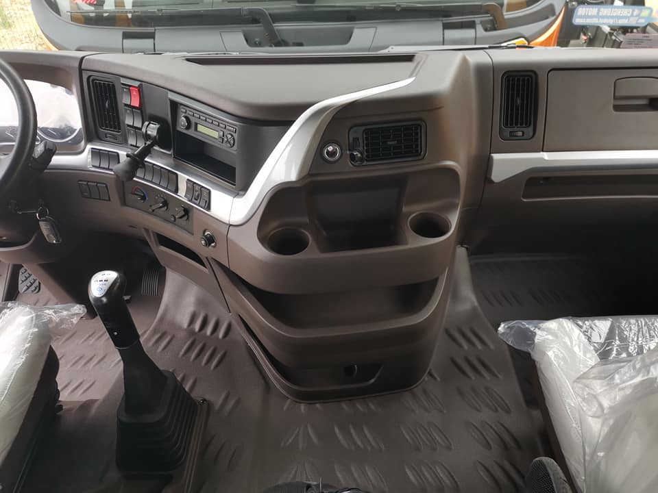 Bên trong khoang cabin có không gian rộng rãi, với nhiều trang bị như ghế lái bóng hơi êm ái, gương gập chỉnh điện, khoang sau với 2 giường tầng, nhiều hộc đựng đồ lớn giúp tài xế và phụ xe thoải mái nghỉ ngơi trên những chuyến hành trình dài. Ngoài ra xe có hệ thống điều hoà điện độc lập, do đó tài xế có thể sử dụng điều hoà mà không cần phải nổ máy khi xe không di chuyển.